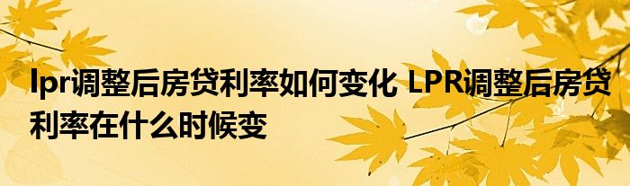 导读 大家好,小理来为大家解答以上的问题。lpr调整后房贷利率如何变化,LPR调整后房贷利率在什么时候变这个很多人还不知道,现在让我们一起来看看