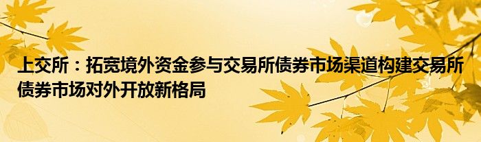 以上就是【上交所:拓宽境外资金参与交易所债券市场渠道构建交易所债券市场对外开放新格局】相关内容。