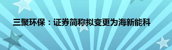 以上就是【三聚环保:证券简称拟变更为海新能科】相关内容。