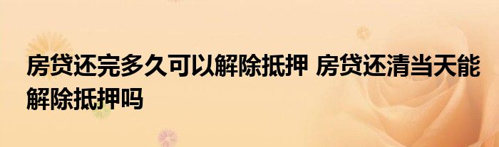导读 大家好,小理来为大家解答以上的问题。房贷还完多久可以解除抵押,房贷还清当天能解除抵押吗这个很多人还不知道,现在让我们一起来看看吧!