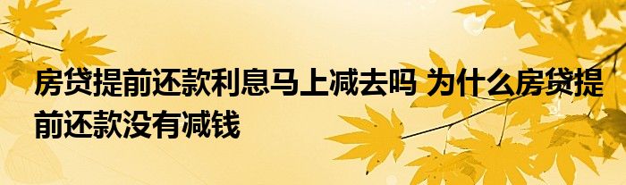 导读 大家好,小理来为大家解答以上的问题。房贷提前还款利息马上减去吗,为什么房贷提前还款没有减钱这个很多人还不知道,现在让我们一起来看看吧