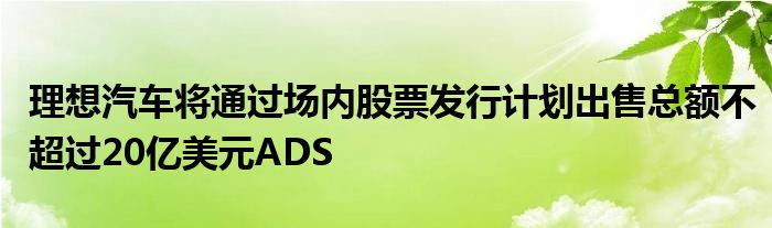 以上就是【理想汽车将通过场内股票发行计划出售总额不超过20亿美元ADS】相关内容。
