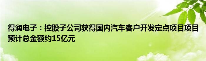 以上就是【得润电子:控股子公司获得国内汽车客户开发定点项目项目预计总金额约15亿元】相关内容。