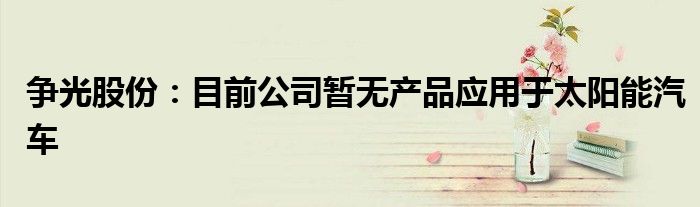 以上就是【争光股份:目前公司暂无产品应用于太阳能汽车】相关内容。