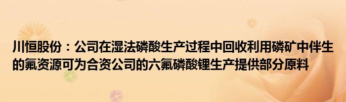 以上就是【川恒股份:公司在湿法磷酸生产过程中回收利用磷矿中伴生的氟资源可为合资公司的六氟磷酸锂生产提供部分原料】相关内容。