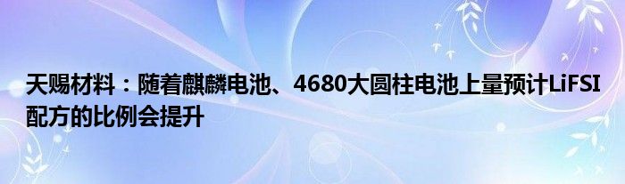 以上就是【天赐材料:随着麒麟电池、4680大圆柱电池上量预计LiFSI配方的比例会提升】相关内容。