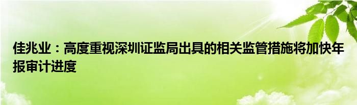 以上就是【佳兆业:高度重视深圳证监局出具的相关监管措施将加快年报审计进度】相关内容。