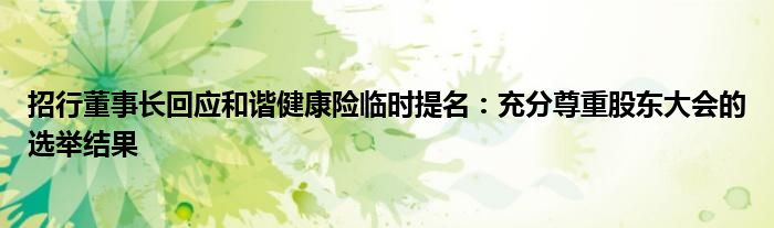 以上就是【招行董事长回应和谐健康险临时提名:充分尊重股东大会的选举结果】相关内容。