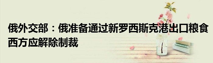 以上就是【俄外交部:俄准备通过新罗西斯克港出口粮食西方应解除制裁】相关内容。