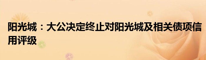6月29日电,阳光城公告,大公决定终止对阳光城及相关债项信用评级。