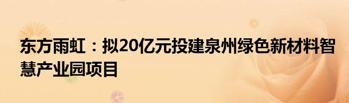 以上就是【东方雨虹:拟20亿元投建泉州绿色新材料智慧产业园项目】相关内容。