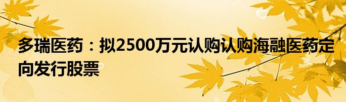 以上就是【多瑞医药:拟2500万元认购认购海融医药定向发行股票】相关内容。