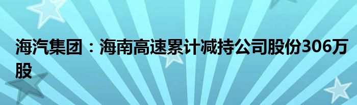 以上就是【海汽集团:海南高速累计减持公司股份306万股】相关内容。