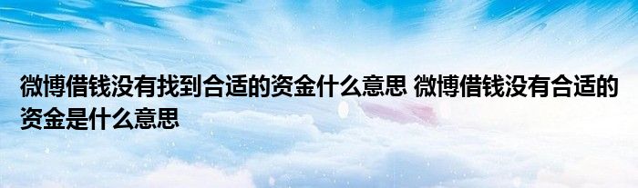 大家好,小理来为大家解答以上的问题。微博借钱没有找到合适的资金什么意思,微博借钱没有合适的资金是什么意思这个很多人还不知道,现在让我们一起来看看吧!