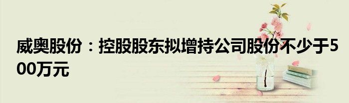 以上就是【威奥股份:控股股东拟增持公司股份不少于500万元】相关内容。