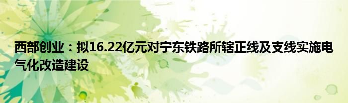 6月29日电,西部创业公告,全资子公司宁夏宁东铁路有限公司计划对宁东铁路所辖正线及支线实施电气化改造建设,工程概算总投资16.22亿元。