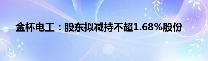 以上就是【金杯电工:股东拟减持不超1.68%股份】相关内容。