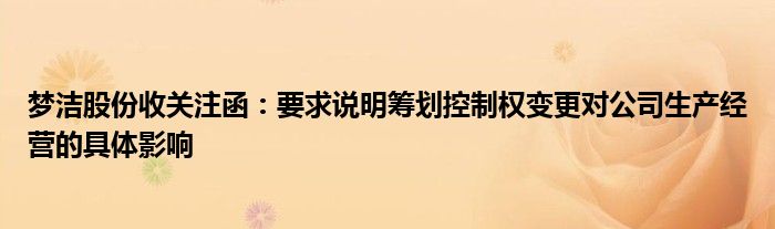 以上就是【梦洁股份收关注函:要求说明筹划控制权变更对公司生产经营的具体影响】相关内容。