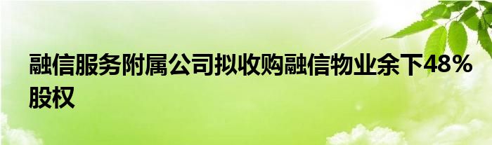 以上就是【融信服务附属公司拟收购融信物业余下48%股权】相关内容。