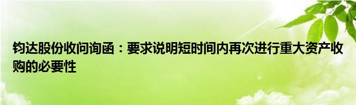 以上就是【钧达股份收问询函:要求说明短时间内再次进行重大资产收购的必要性】相关内容。