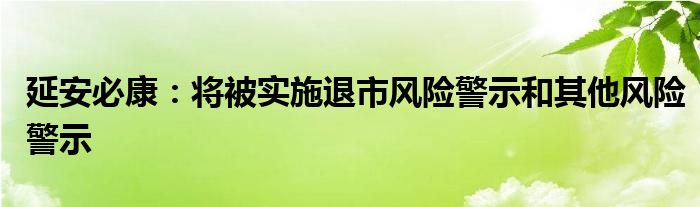 以上就是【延安必康:将被实施退市风险警示和其他风险警示】相关内容。
