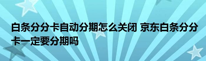 导读 大家好,小理来为大家解答以上的问题。白条分分卡自动分期怎么关闭,京东白条分分卡一定要分期吗这个很多人还不知道,现在让我们一起来看看吧