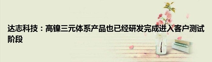 以上就是【达志科技:高镍三元体系产品也已经研发完成进入客户测试阶段】相关内容。