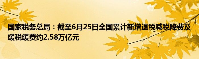 以上就是【国家税务总局:截至6月25日全国累计新增退税减税降费及缓税缓费约2.58万亿元】相关内容。