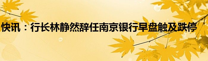 以上就是【快讯:行长林静然辞任南京银行早盘触及跌停】相关内容。