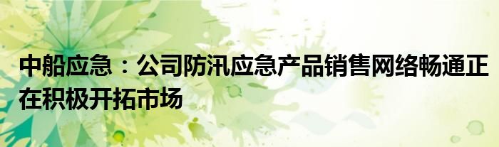 以上就是【中船应急:公司防汛应急产品销售网络畅通正在积极开拓市场】相关内容。