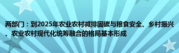 以上就是【两部门:到2025年农业农村减排固碳与粮食安全、乡村振兴、农业农村现代化统筹融合的格局基本形成】相关内容。