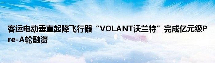 以上就是【客运电动垂直起降飞行器“VOLANT沃兰特”完成亿元级Pre-A轮融资】相关内容。