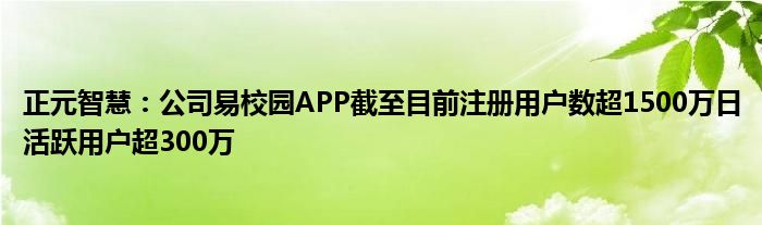 以上就是【正元智慧:公司易校园APP截至目前注册用户数超1500万日活跃用户超300万】相关内容。