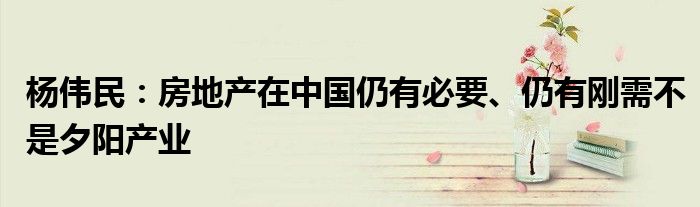 以上就是【杨伟民:房地产在中国仍有必要、仍有刚需不是夕阳产业】相关内容。