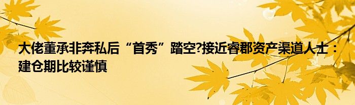 以上就是【大佬董承非奔私后“首秀”踏空?接近睿郡资产渠道人士:建仓期比较谨慎】相关内容。