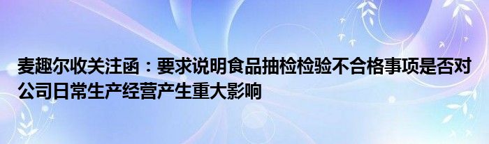 以上就是【麦趣尔收关注函:要求说明食品抽检检验不合格事项是否对公司日常生产经营产生重大影响】相关内容。