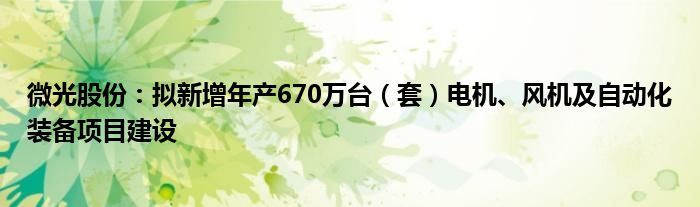 以上就是【微光股份:拟新增年产670万台(套)电机、风机及自动化装备项目建设】相关内容。