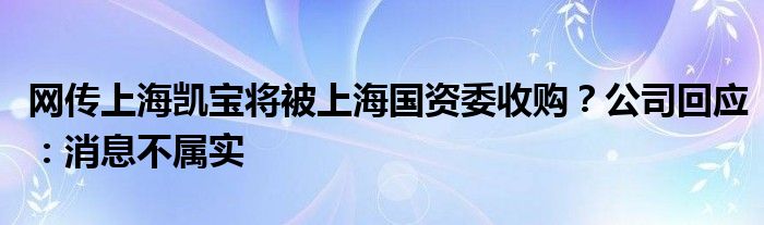 以上就是【网传上海凯宝将被上海国资委收购?公司回应:消息不属实】相关内容。
