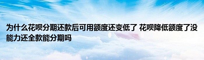 导读 大家好,小理来为大家解答以上的问题。为什么花呗分期还款后可用额度还变低了,花呗降低额度了没能力还全款能分期吗这个很多人还不知道,现在