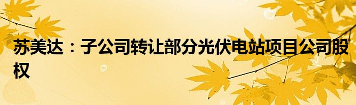 以上就是【苏美达:子公司转让部分光伏电站项目公司股权】相关内容。