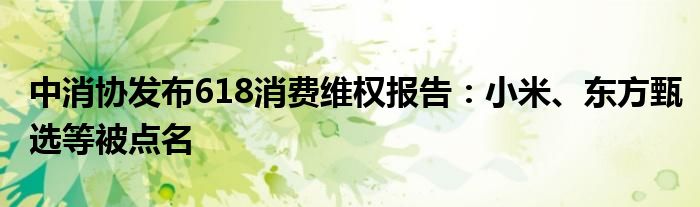 以上就是【中消协发布618消费维权报告:小米、东方甄选等被点名】相关内容。