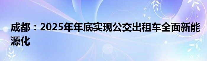 以上就是【成都:2025年年底实现公交出租车全面新能源化】相关内容。