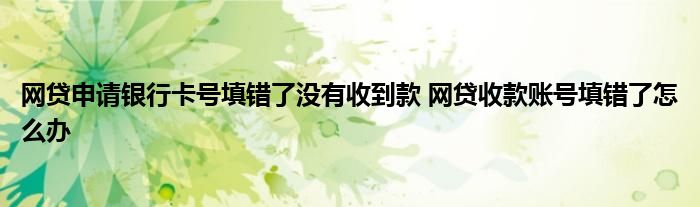 导读 大家好,小理来为大家解答以上的问题。网贷申请银行卡号填错了没有收到款,网贷收款账号填错了怎么办这个很多人还不知道,现在让我们一起来看