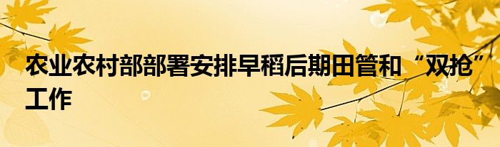 以上就是【农业农村部部署安排早稻后期田管和“双抢”工作】相关内容。