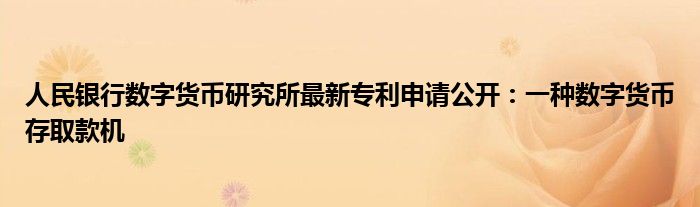 导读 6月30日电,中国人民银行数字货币研究所最新的一个专利申请,在本周被公开。该专利名称为“一种数字货币存取款机”,旨在实现在存取款机中