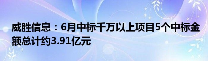 以上就是【威胜信息:6月中标千万以上项目5个中标金额总计约3.91亿元】相关内容。