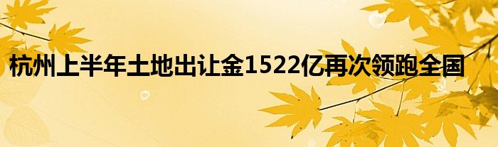 以上就是【杭州上半年土地出让金1522亿再次领跑全国】相关内容。