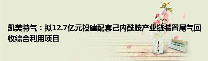 以上就是【凯美特气:拟12.7亿元投建配套己内酰胺产业链装置尾气回收综合利用项目】相关内容。