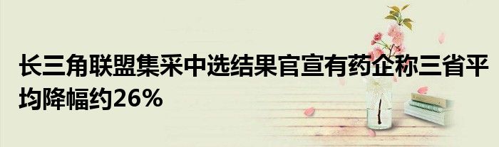 以上就是【长三角联盟集采中选结果官宣有药企称三省平均降幅约26%】相关内容。