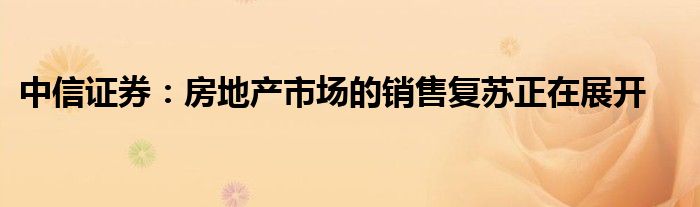 以上就是【中信证券:房地产市场的销售复苏正在展开】相关内容。